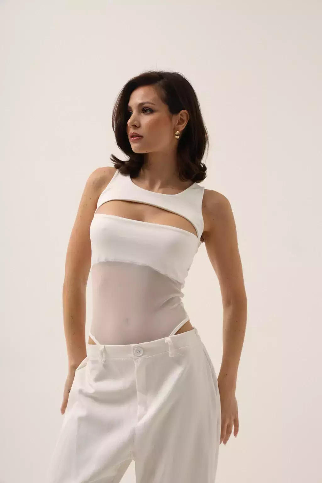 Body de lycra con sustracción en frente y recorte de tul. Cuenta con ganchitos para abrochar en la parte baja para que puedas sentirte mega cómoda al usarlo. Combinalo con nuestro Short pollera Duali y ¡Salí a brillar!