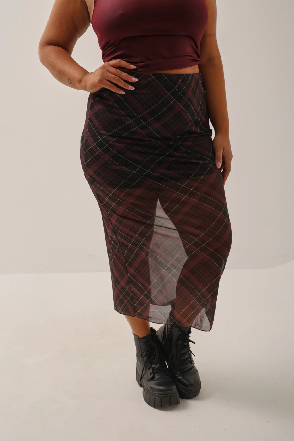 Falda cuadrillé larga hasta los tobillos. Tiene forrería y tajo detrás. Esta falda eleva cualquier outfit, yo que vos la añado al carrito. Podés usarla con un estilo más urbano con algún remerón o stylearla más para la noche con nuestro top Trina y sumarle muchos accesorios. ¡Es una bomba!