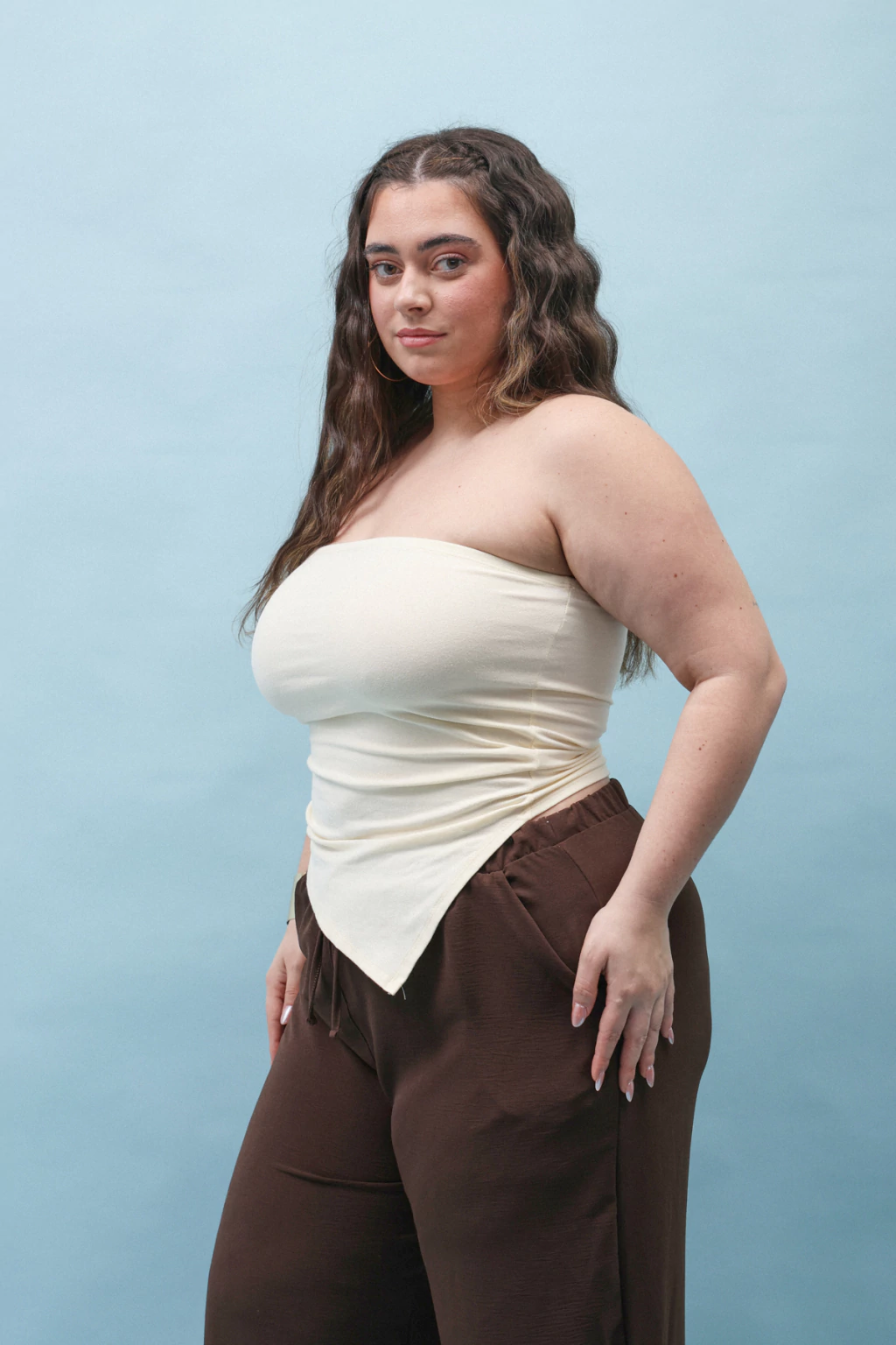 Un básico infalible. Este top strapless de algodón con lycra tiene terminación en forma de pico que estiliza y suma un detalle sutil pero con onda. Cómodo, versátil y clave para cualquier plan: de día para merendar o salir tranqui, y de noche lo levantás con accesorios cancheros y estás lista para el boliche.