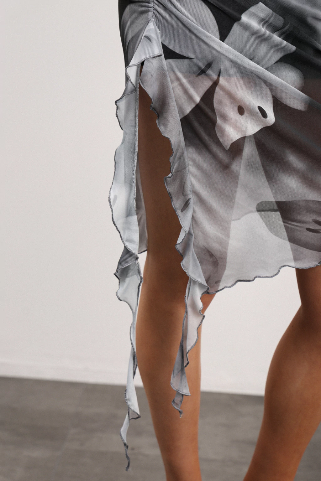 Vestido de tul sublimado con estampa floral amplia. Súper fresco y a la moda, ideal para este verano. Tiene forrería, es largo y bien canchero para lucir en cualquier plan al aire libre o en la playa. ¡Perfecto para estar top y a la moda en esta temporada!